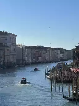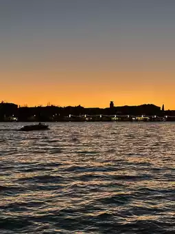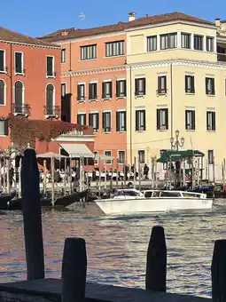 威尼斯的水上高速公路。日落时分乘坐水上巴士,欣赏宫殿——黄金宫、格拉西宫——在夕阳的映照下闪耀着蜂蜜般的金色光芒。