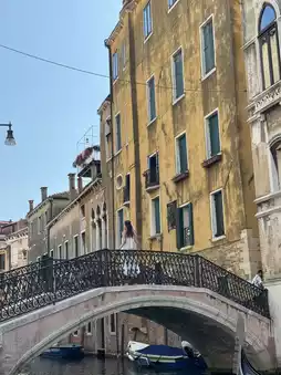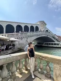 这座纯白的石桥就在广场附近,连接着古老的皇宫和监狱。在蓝色运河的映衬下,它营造出浪漫而充满故事的氛围。🍝