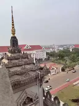 这座标志性建筑巍然屹立于城市中心,形似法国的凯旋门,却又融合了老挝精美的建筑风格。🌿