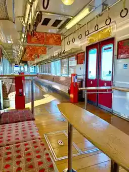 运行在这条线路上的装饰列车🚃内部也装饰得十分可爱。