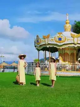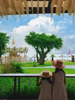 一个面向椰林和海滩🌊的私人庭院,还有梦幻般的旋转木马🎠和小火车。