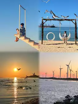 ✅ **下午6:30日落**:沙滩秋千 + 风车海岸线