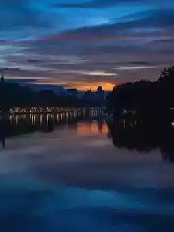 夕阳西下,西湖被染成一片深蓝与灰紫交织的色彩,古老的湖泊仿佛也随之慢了下来。断桥的残影横亘在水面上,柳枝轻柔地垂落,宛如墨迹般轻轻晕染。游船缓缓驶过,在水面上泛起淡淡的涟漪。每一缕光影的闪烁,都像是一首经岁月精心打磨的诗句。