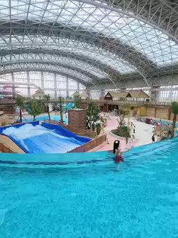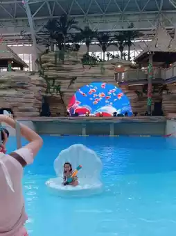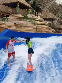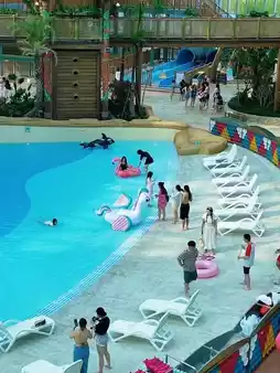 您的理想之选。踏入度假村,仿佛置身于热带梦境。室内水上乐园绿意盎然,茅草屋与椰树交相辉映,营造出迷人的海岛风情。全年恒温,让您尽享水上乐趣,无需担心酷暑。人造波浪池持续造浪,带您体验冲浪的刺激。千万别错过207米长的漂流河——从高处纵身跃下,感受风吹过耳畔,与湍急水流碰撞,肾上腺素飙升。更有七条奇幻滑道,带您进入梦幻世界。