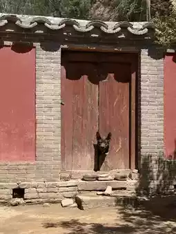 寺里还有一只名叫二良的大狗,它把头咬穿了门,结果卡在了里面,真是太搞笑了!