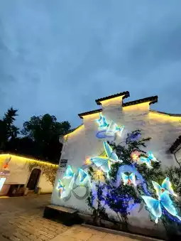 的邂逅:在游客服务中心旁边,有一个展厅——这是整个古镇最现代也最安静的角落。走进展厅,我看到一面青白相间的墙壁,铺着镜面般的地板,一棵金色的树静静地伫立在中央。那一刻,我仿佛走进了一幅画中。而不知不觉中,我已经站在了画里……