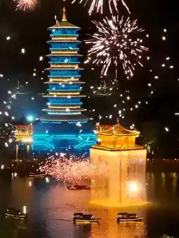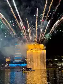 夜晚,欣赏非物质文化遗产铁花锻造和浪漫烟花表演🎆