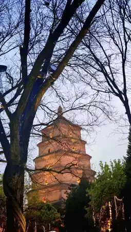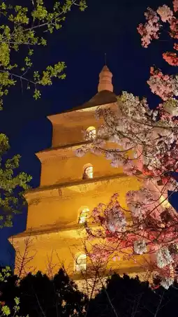 . 大雁塔:唐代僧人玄奘曾在此翻译经文。现存的七层砖塔可以俯瞰整个城市。周围的大唐全日购物中心夜晚灯火辉煌,还有精彩的免费演出。3