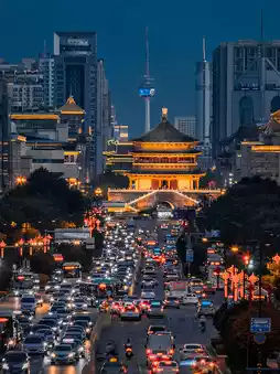 白天,古老的痕迹遍布街头巷尾;夜晚,金色的灯光点亮了整个城市。在这里穿汉服,仿佛穿越回了过去。西安城墙和大唐城尤其以其夜间汉服拍照胜地而闻名。