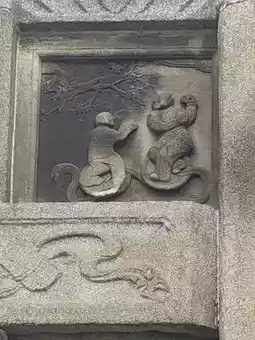 始建于清顺治七年(1650年),江西商人在此地建造了徐景阳寺,寺门牌匾上刻有“万寿阁”字样。寺庙建筑群呈园林式布局,包括牌坊、正殿、水边亭、凉亭和花园。虽然中央正殿已毁,但现存的石雕牌坊和水边亭(赵亭)依然屹立。江西会馆石牌坊为纪念性建筑,由花岗岩和白玉砌成,设有一个正门和两个侧门,高12米,宽5米,两侧各有一尊石狮。牌坊上雕刻着精美的双龙、人物和神兽浮雕,牌匾上用正楷刻有会馆名称“江西会馆”。该牌坊保留了江西会馆昔日的宏伟风貌,对明清历史研究具有重要价值,被指定为湖南省重点文物保护单位。