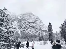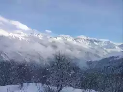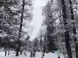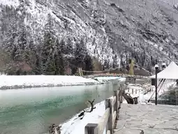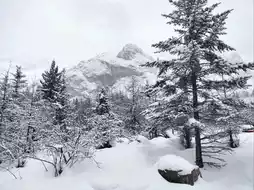 乘坐观光巴士直达海拔4000多米的红杉林。三月下旬,鹅绒雪、广袤的雪原和枯树构成了一幅银装素裹的世界。下山后,碧绿的湖泊、灰黑色或黄色的岩壁和草原映入眼帘,又是另一番美景。离开景区下山时,阳光突然普照,蓝天白云下,白雪皑皑的群山,真是美不胜收!