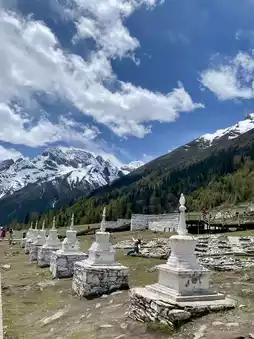 四姑娘山(四川)的必游景点之一便是“藏式佛塔”,它雄伟地矗立在群山环绕的壮丽景色之中,散发着神圣的气息,完美诠释了藏族文化的精髓。✨ 环境