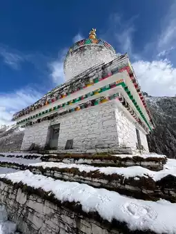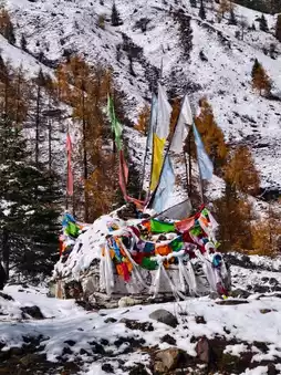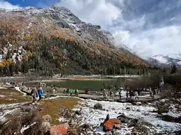 以其色彩斑斓的森林和秋季的雪山而闻名。双桥沟的湖泊倒映着森林的绚丽色彩。这里因当地居民用柳树和红杉木搭建的桥梁而得名,拥有雪山、冰川、湖泊和森林等多种景观,是适合普通游客的高原天堂。