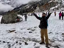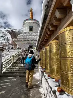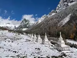 游览双桥沟预计需要5个小时。第一段路比较狭窄,那里居住着许多嘉绒藏族人家。我们的藏族导游指出,房屋附近的许多树上都结满了沙棘果,富含维生素C,可以榨汁饮用。突然间,我对这种在四姑娘山随处可见的水果产生了一种特殊的感情。四姑娘山