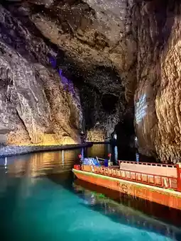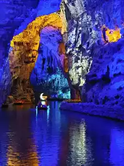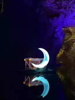 游览天泉洞,乘船游览地下河,体验宇航员洞穴探险和火山熔岩灯光秀,并在火山咖啡馆放松身心或拍照留念。