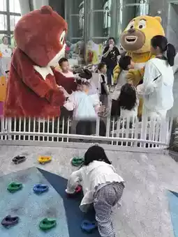 大堂互动:熊宝宝Bramble和Briar全天“值班”!即使在早餐时间,它们也会和孩子们击掌合影——氛围满分!