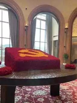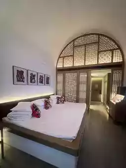 酒店采用陕北洞窟建筑风格。大堂的水晶吊灯灵感源自延安标志性的宝塔山,完美融合了现代与传统元素。客房可饱览河谷美景——尤其推荐带阳台的花园景观房,是品茶聊天、放松身心的理想之选。