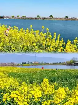 🌼陈村观景点:陈村的油菜花田位于山间,毗邻水库,形成多层次的景观。您可以漫步于花海之中,体验山水的宁静与美丽,或在湖边野餐。🌼