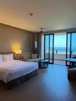 客房,坐拥壮丽海景!落地窗外,碧海蓝天,清晨醒来即可饱览美景!
