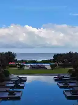 酒店的泳池区也美轮美奂!与海景完美融合!