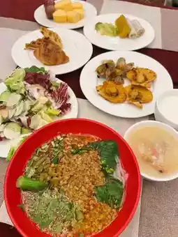 早餐种类丰富,令人眼花缭乱,涵盖西式和中式佳肴🥐。