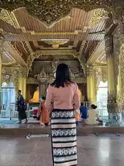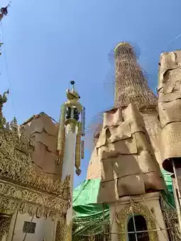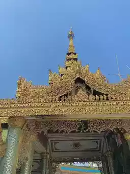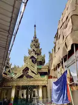 如今这座八角形佛塔高约44米,巍然屹立于仰光市中心。从街对面的天桥或周围的高楼大厦上都能看到它。