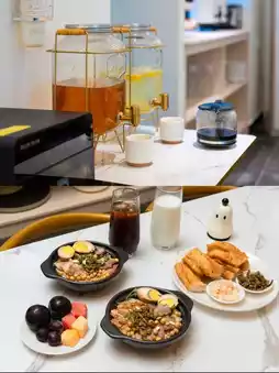 每天清晨,当第一缕阳光透过窗帘洒进房间时,酒店工作人员就会送上新鲜的咖啡和早餐。早餐种类丰富,既有面包牛奶等西式选择,也有粥品和各种小菜等中式佳肴,总有一款能满足您的味蕾。坐在阳台上,一边享用美味的早餐,一边欣赏漓江潺潺流淌,真是无比惬意。🌟