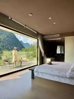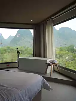 酒店共有30间客房,分布在A栋和B栋楼内。A栋楼紧邻泳池🏊♀️。客房宽敞明亮,落地窗🪟让您躺在床上即可饱览桂林的迷人景色。😌