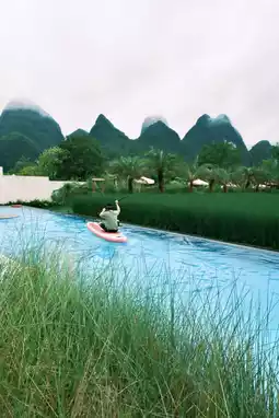 下午,您可以在泳池里游泳或戏水,享受清凉的池水。租一辆电动自行车,探索附近的月亮山、蝴蝶泉等景点,或者前往后院·阳朔艺术馆,感受艺术的熏陶。这里处处皆景,让您无需远行,即可沉浸于阳朔的自然美景,呼吸新鲜空气,在天然氧吧中放松身心。
