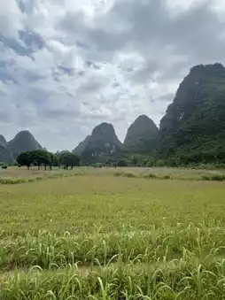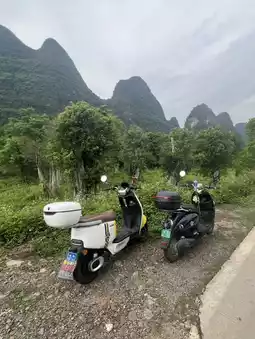 探索阳朔的最佳方式?租一辆电动滑板车🛵,穿梭于稻田、古朴的村庄,沿着遇龙河一路前行,欣赏竹筏在河面上缓缓漂流。千万别错过日落时分的月亮山🌅——景色美得令人窒息!