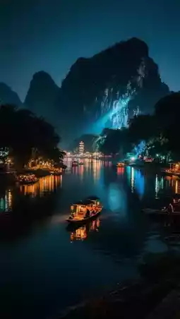 晚上8点,观看灯光秀+水幕电影✨ 漓江两岸瞬间化身为仙境。