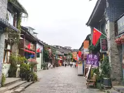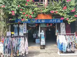 兴坪古街铺着石板路,古色古香,街道两旁林立着餐馆、小吃店、咖啡馆、纪念品商店、民族服装租赁店、精品店和服装店。