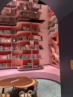 ✔️书籍按类别整齐摆放,不时可见作者的名言和画像,儿童区装饰得非常可爱,很适合孩子的视线高度📖☺️