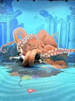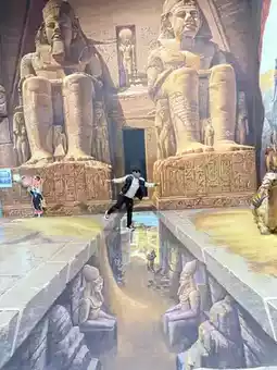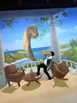 当我踏入博物馆的那一刻,感觉仿佛进入了一个连墙壁都充满奇思妙想的世界。这里的错觉效果非常逼真——前一秒你还在被恐龙追赶,下一秒你可能就在冲浪,或者悬挂在悬崖边。AR功能更进一步,当你使用他们的应用程序或提供的平板电脑时,艺术作品会动起来或做出反应。这就像让画作活了起来!