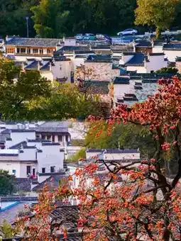1. 经典观景台——捕捉明信片般的美景:进入塔川村之前,路边的观景台是必游之地。从这里,可以看到层层叠叠的乌桕树由绿转黄,再转红,宛如一幅色彩斑斓的画卷,白墙黑瓦的房屋点缀其间,构成一幅无可替代的经典画面,是绝佳的摄影胜地。2