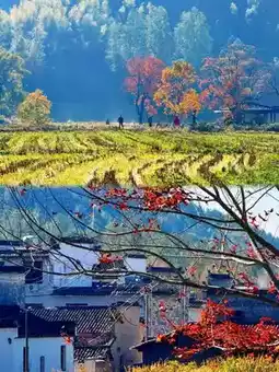 . 徒步村庄——漫步秋色画卷:不要只是远观。购买门票进入村庄,沿着山脊和古道漫步。阳光透过五彩斑斓的树叶,洒下斑驳的光影;溪水潺潺,村民们在家门口晾晒火红的辣椒和金黄的玉米。这“秋晒”的习俗与秋日的自然色彩和谐交融,生机勃勃。3.
