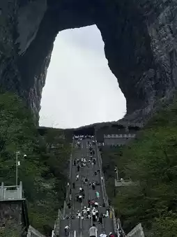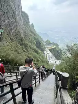 上山需要乘坐缆车。旺季时,可能需要排队几个小时。最好选择工作日前往,并尽早出发。游览天门山的优势在于其便利性和便捷性。缆车站就在市中心,无需长途跋涉。下一篇文章我会推荐一些适合游览天门山的酒店,因为它们都位于缆车站附近。