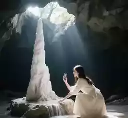 ——一根历经15万年形成的巨型钟乳石。点亮后,瞬间化身为“阿凡达”般的神秘世界!热门拍照点:蹲下仰拍,使用广角镜头+炫彩滤镜,打造极致科幻效果。——