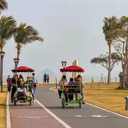 晚餐后,我们前往景山公园乘坐缆车。坐在缆车上,我们一边欣赏壮丽的海景,一边缓缓上升。景色真是太美了!登上山顶,可以俯瞰整个珠海,饱览城市美景。下山后,可以体验刺激的日落过山车,感受速度带来的快感。之后前往野里岛。您可以租一辆自行车🚴♀️,环岛骑行,享受悠闲时光😌😌。