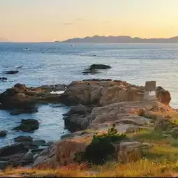 落日余晖洒在身上,温暖柔和,让人不禁驻足,沉醉于这美丽的画面。远处,小船在海面上摇曳,如同闪烁的星辰,将我带入一个遥远的梦幻世界。