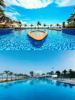 1. 海景温泉区:无边泳池与海天相接,景色壮丽,尤其在日落时分。2