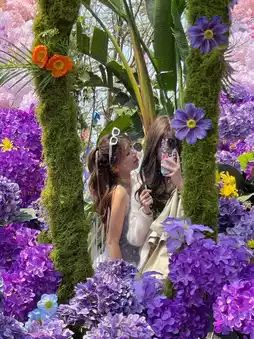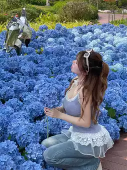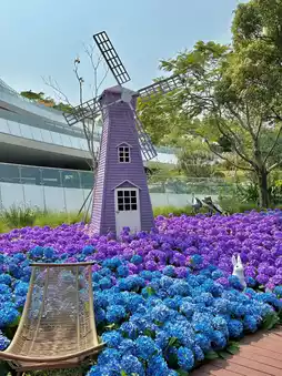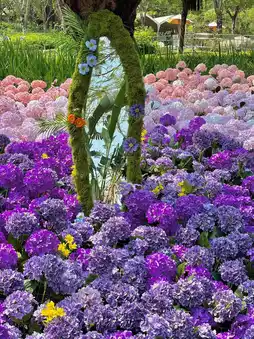 沿着悬空楼梯轻盈地走到二楼,映入眼帘的是四个醒目的“关海庐展”大字,而隐藏在它们背后的,简直就是现实版的莫奈花园!🌸一片绣球花的海洋映入眼帘,粉色、蓝色、紫色,各种梦幻般的色彩交织在一起,仿佛大自然颠覆了调色盘。漫步其中,随意找个角度拍照📷,就能拍出足以在朋友圈里炫耀的美照。