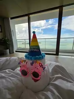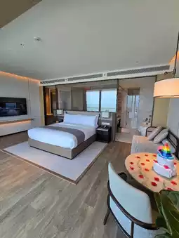 我在Trip.com上预订了一间豪华海景大床房(可欣赏全景海景和日出美景)🌅。躺在舒适的床上,即可饱览日月贝和香庐湾的迷人风光。黄昏时的日落美得令人窒息!🌞💖 房间还拥有一个宽敞的阳台💖,每一张照片都美得像明信片!📸✨ 房间里配备一个深浸浴缸🛁,您可以一边欣赏美景一边放松身心——极致享受!😌🌊 房间配备智能系统,只需轻轻一触即可控制灯光💡、窗帘🪟和空调❄️,为您的入住增添一丝科技感。🚀