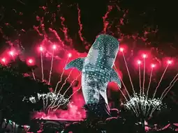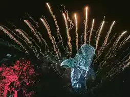 这里拥有世界上最大的鲸鲨展区,常年展出三条鲸鲨。从远处就能看到公园标志性的巨型鲸鲨雕塑。夜晚,您可以欣赏到精彩绝伦的烟花表演,与水上舞蹈和水上飞板表演完美融合。✨️✨️