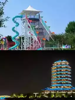 下午:参观以其独特建筑风格和设计感而闻名的海岱塔钟楼书阁,这里是拍照的绝佳地点📸。之后,漫步启胜湖公园,欣赏自然风光。晚上7:30,您可以观看海岱塔灯光秀。📍