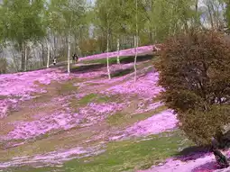 "Higashimokoto Shibazakura Park" is located in northeastern Hokkaido, at the foot of Mt. Higashimokoto in Ozora Town on the coast of the Sea of Okhotsk. The moss phlox blooms around mid-May every year, with small, sweet flowers in red, pink and white.