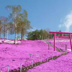 In conjunction with the flowering season, the annual "Shibazakura Festival" is held here, where you can fully enjoy the late spring in Hokkaido. In addition to shops selling local delicacies, the park also has many facilities such as go-karts, fishing grounds, hot springs, and a historical shrine.