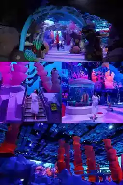 Featuring vibrant fairy-tale designs, this area showcases microscopic marine creatures and various play facilities for children, perfect for family trips.