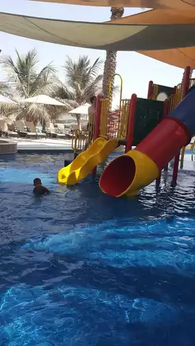 The hotel is ideally located, just a 15-minute drive from Yas Island, making it ideal for both leisure and business travelers. The on-site shopping center makes shopping even more convenient. Although a little far from the city center, it is a great place to enjoy a peaceful time, especially for weekend breaks. The front desk supports late check-out and room upgrades, demonstrating excellent service flexibility. Family travelers can also enjoy quality breakfasts and a variety of entertainment facilities such as swimming pools, trampolines and soccer fields.