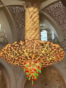 Stepping inside revealed an entirely different world. Beneath my feet lay the world's largest handmade carpet, while above, dazzling crystal chandeliers dominated the space. The white walls and ceilings were intricately adorned with floral patterns and arabesque designs, offering new details with every step.